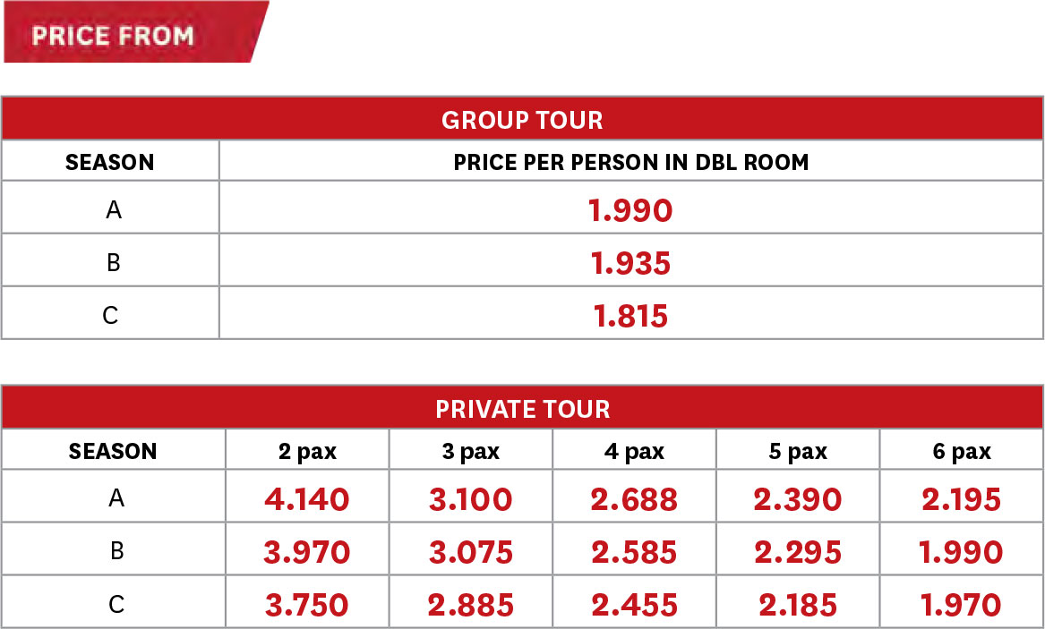 | Length | 8 days / 7 nights in a 4 star hotel |